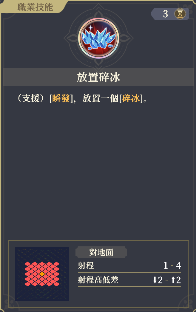 (支援) [即時]、[砕氷]を1つ配置する。[砕氷]を拾うと追加スキル[砕氷飛刃]を1回使える。