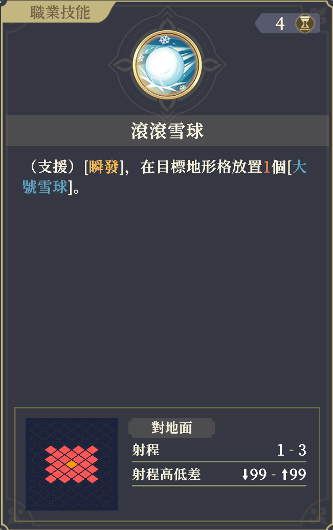 (支援)[瞬発]目標の地形マスに[大號雪球]を1個設置する。