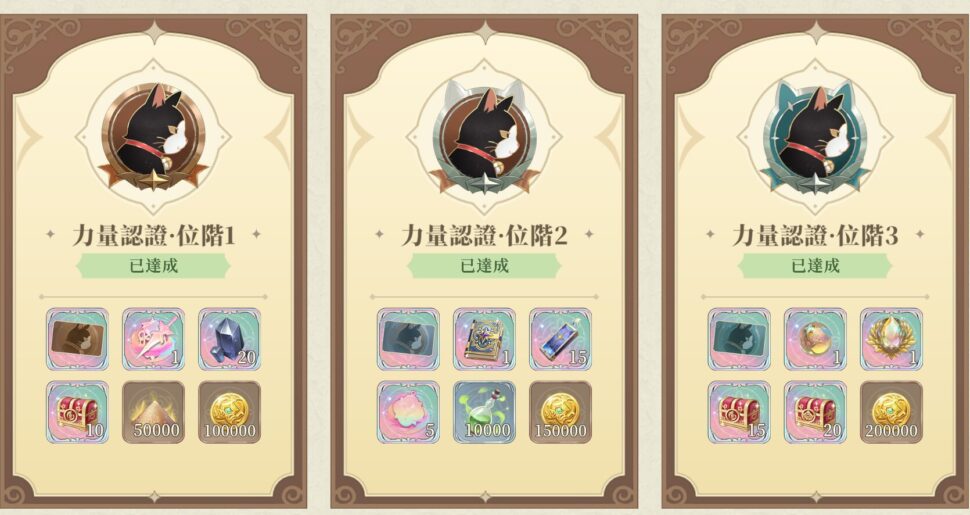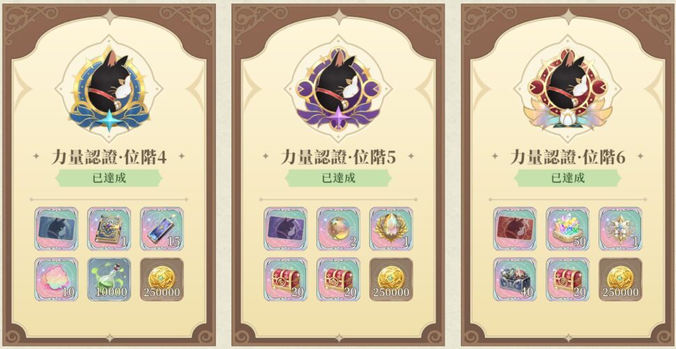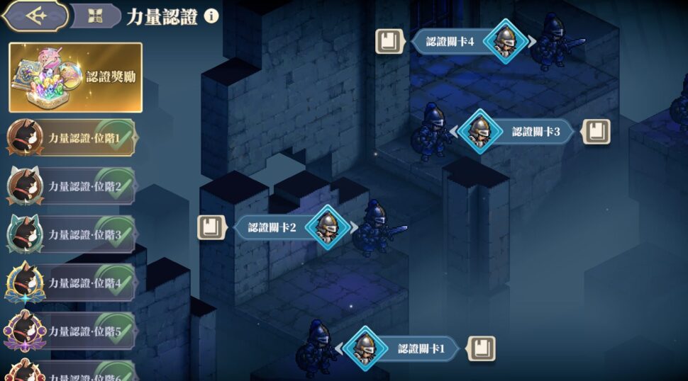 台湾では「力量認證」。攻略は1回きり、報酬がかなり豪華なので可能な限り踏破したいチャレンジコンテンツ。常設なので自分のペースでOKです。内容としては嫌な環境効果がついたステージを淡々とクリアするだけで特に難しいことは要求されません。