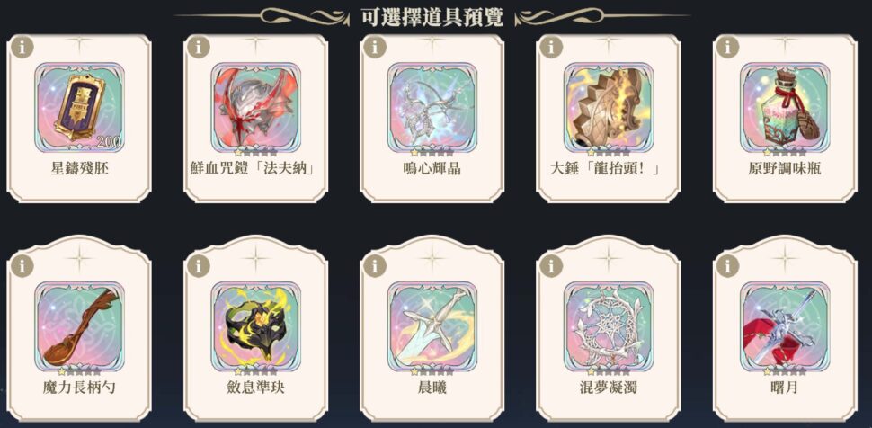 好きなモチーフ装備か、ランダム箱と交換できるトークン(星鑄残胚)200がもらえます。