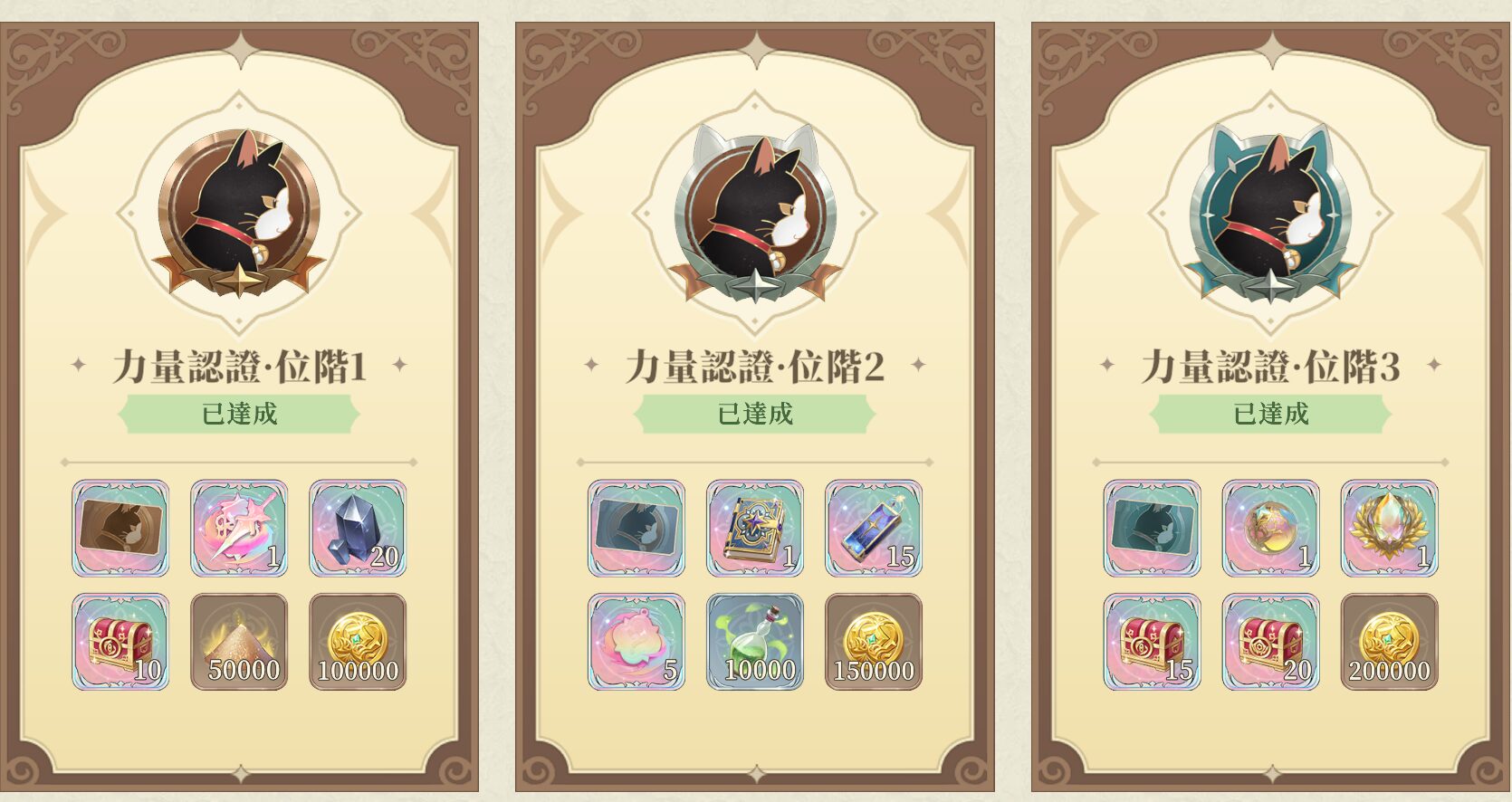 台湾では「力量認證」。攻略は1回きり、報酬がかなり豪華なので可能な限り踏破したいチャレンジコンテンツ。常設なので自分のペースでOKです。内容としては嫌な環境効果がついたステージを淡々とクリアするだけで特に難しいことは要求されません。