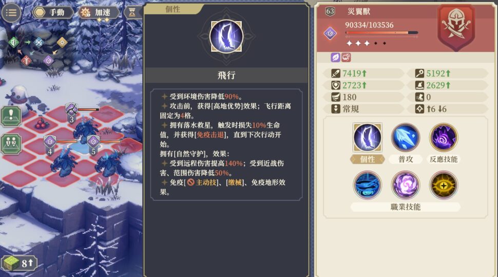・攻撃前「高地優勢」を獲得;飛行距離は4マス固定