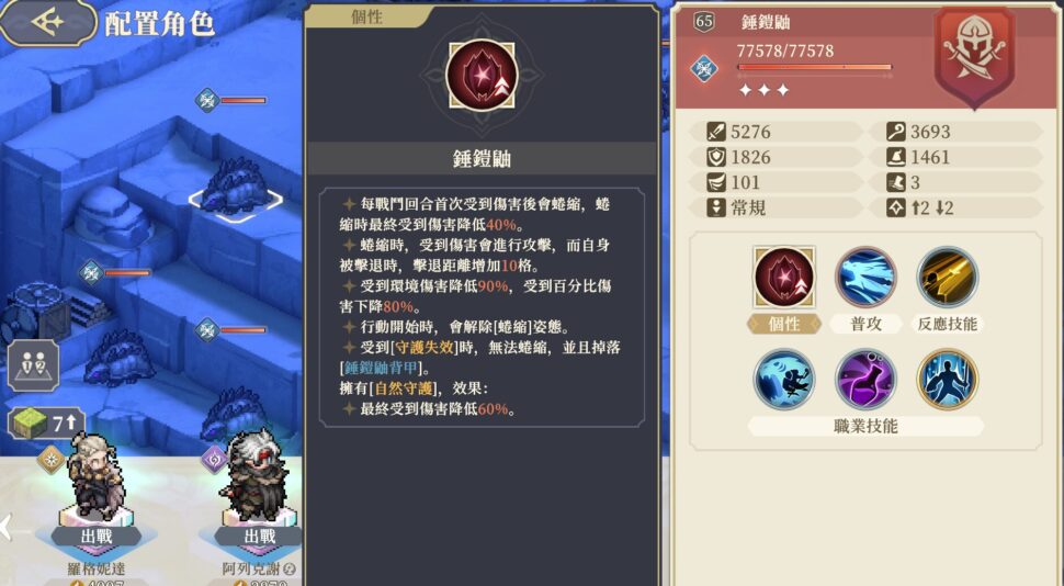 ・落水救星(※水や穴に落ちても復帰する)を所持。発動時にHP-10%、「ノックバック無効」を獲得(次の行動開始まで)
